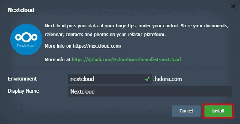 Le déploiement de Nextcloud sur le site cloud est super facile avec le service Hidora Cloud . Il suffit de suivre les étapes suivantes.
