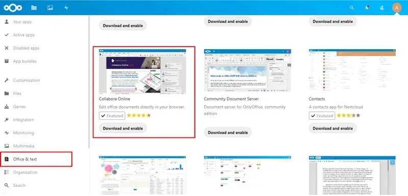 Veuillez suivre les étapes suivantes pour intégrer Collabora Online Office dans l’environnement Nextcloud.