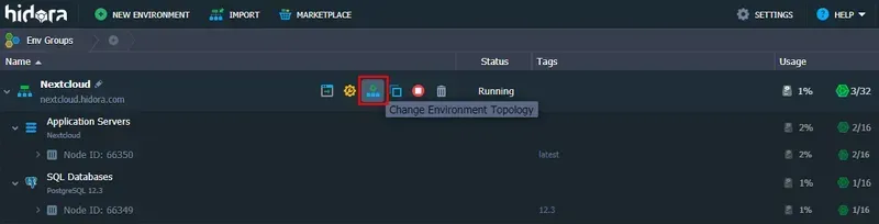 - développez la topologie de votre environnement Nextcloud afin de la modifier.