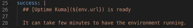 Vous pouvez personnaliser un message qui sera envoyé après la création de l’environnement.